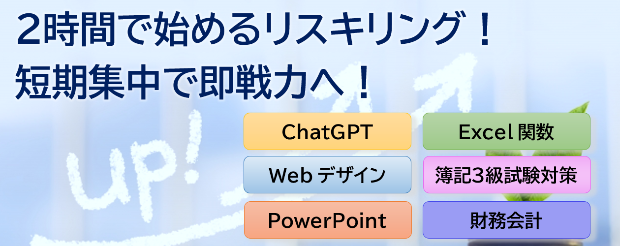 通常4時間以上の受講時間をぎゅっと圧縮し、全1回、2時間程度で効率よくスキルアップできる講座です!